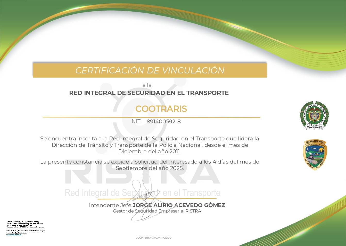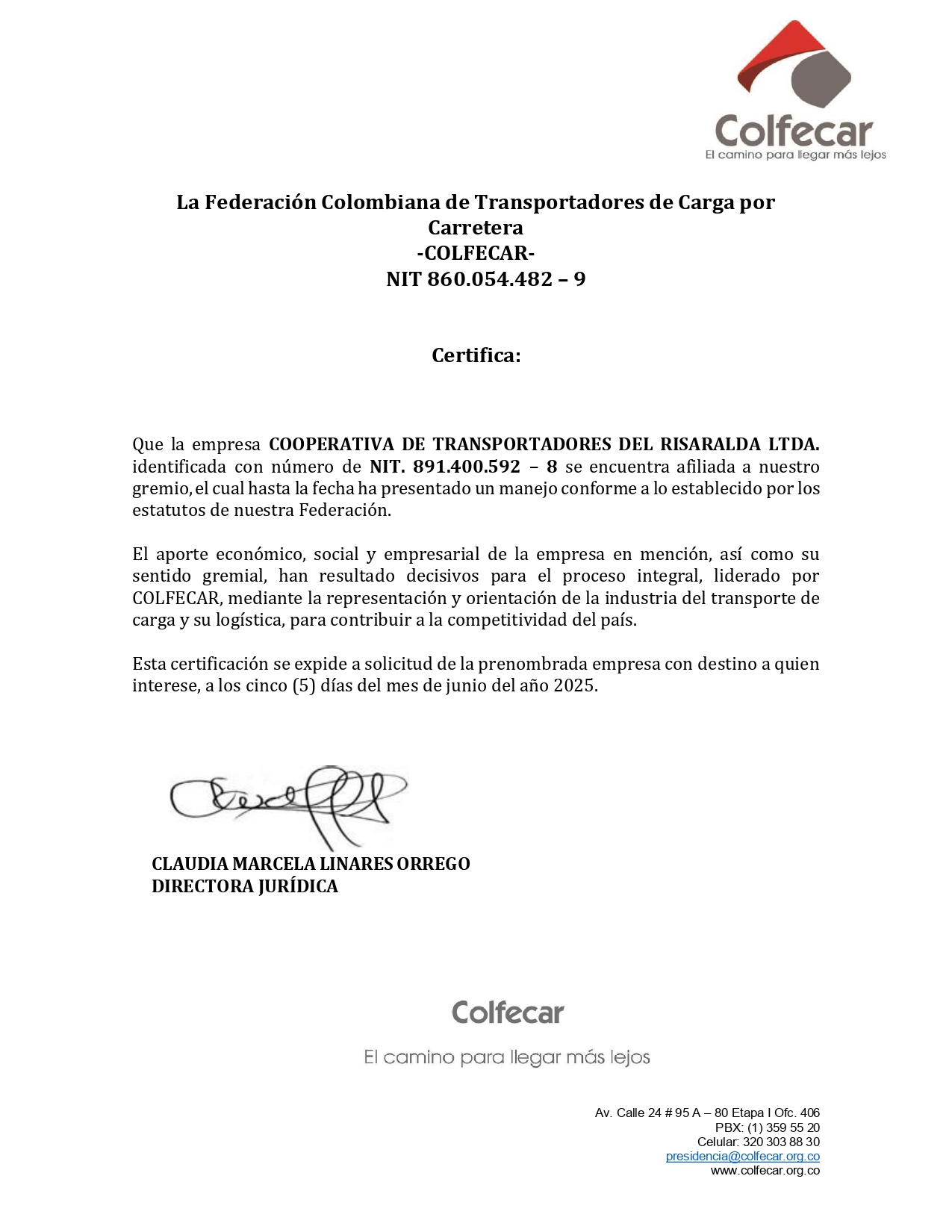 La Cooperativa de Transportadores del Risaralda Ltda., se encuentra vinculada a agremiaciones como Colfecar, Confecoop, y Ristra.